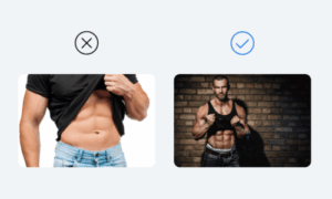 - Imazhe që përqendrohen në pjesë të veçanta të trupit, siç janë muskujt e barkut, vithet ose gjoksi, edhe nëse nuk është shprehur hapur si seksuale.